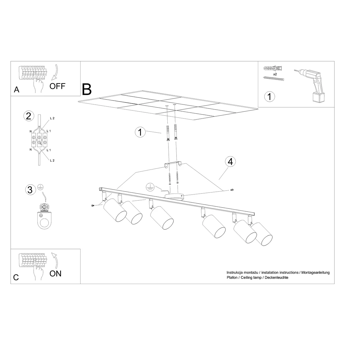 Type of lamp:Ceiling light 6 (bar)