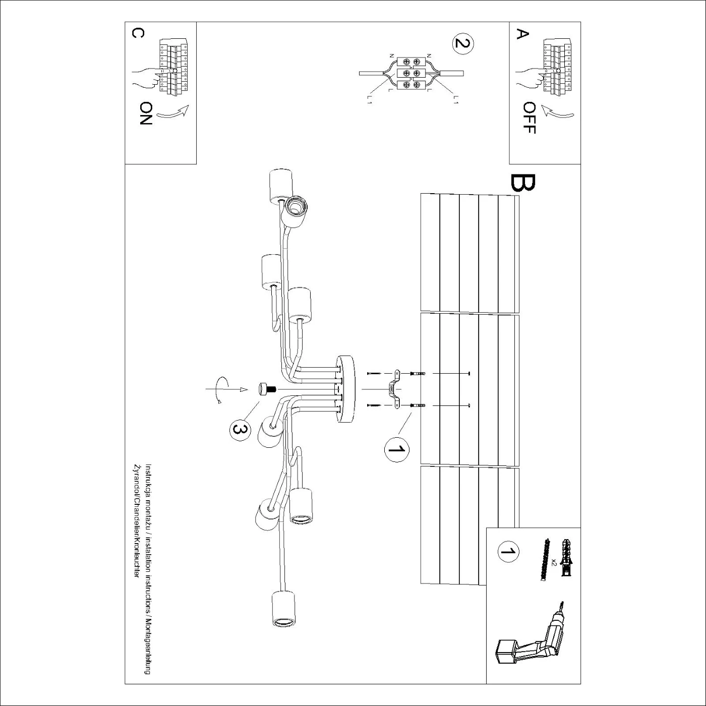 Depending on the version - wall lamp or chandelier with six or eight arms - TIMBO provides the perfect lighting in any room. The possibility of using interchangeable E27 bulbs allows full freedom in the choice of light output and color, allowing you to create the perfect atmosphere.