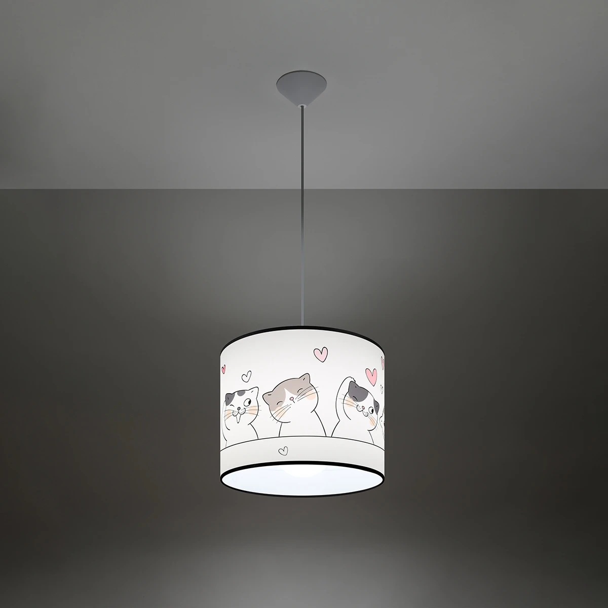 The CAT pendant lamp for the children's room is available in 2 sizes: with a shade diameter of 30 and 40 cm. This allows you to better match it to the size of the room. Nothing prevents you from creating lighting compositions from several lamps - as many ideas, as many possibilities!