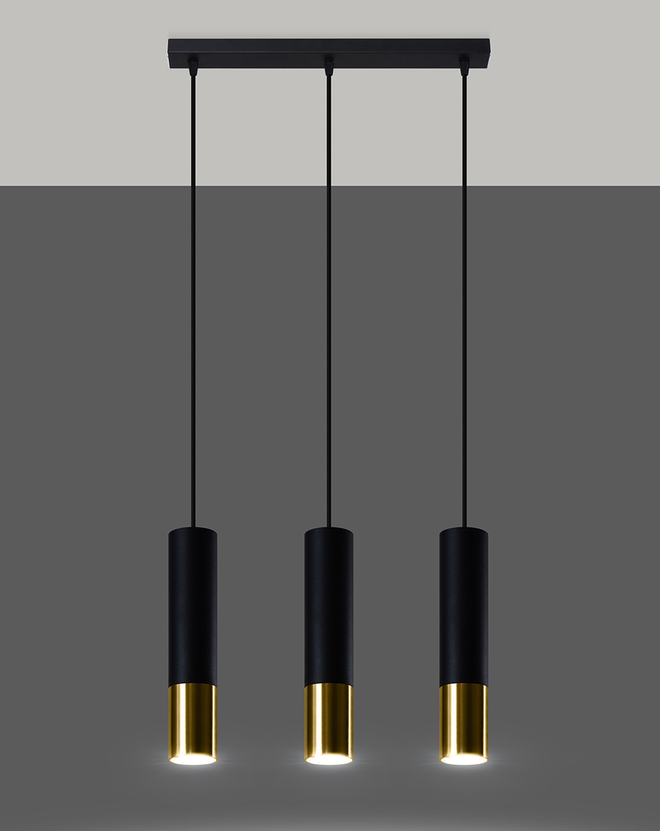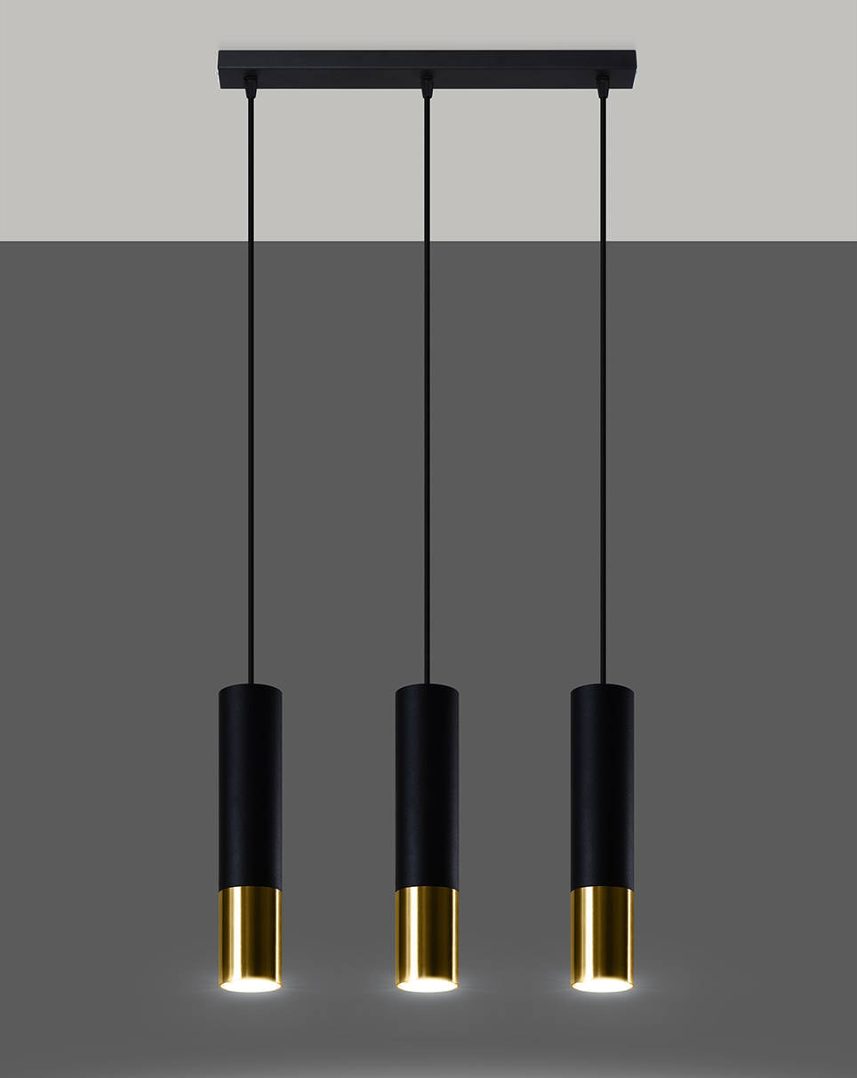 Pendant Lamp LOOPEZ 3L black/gold + 3x LED Bulb GU-10 3000K Warm 7W 620lm