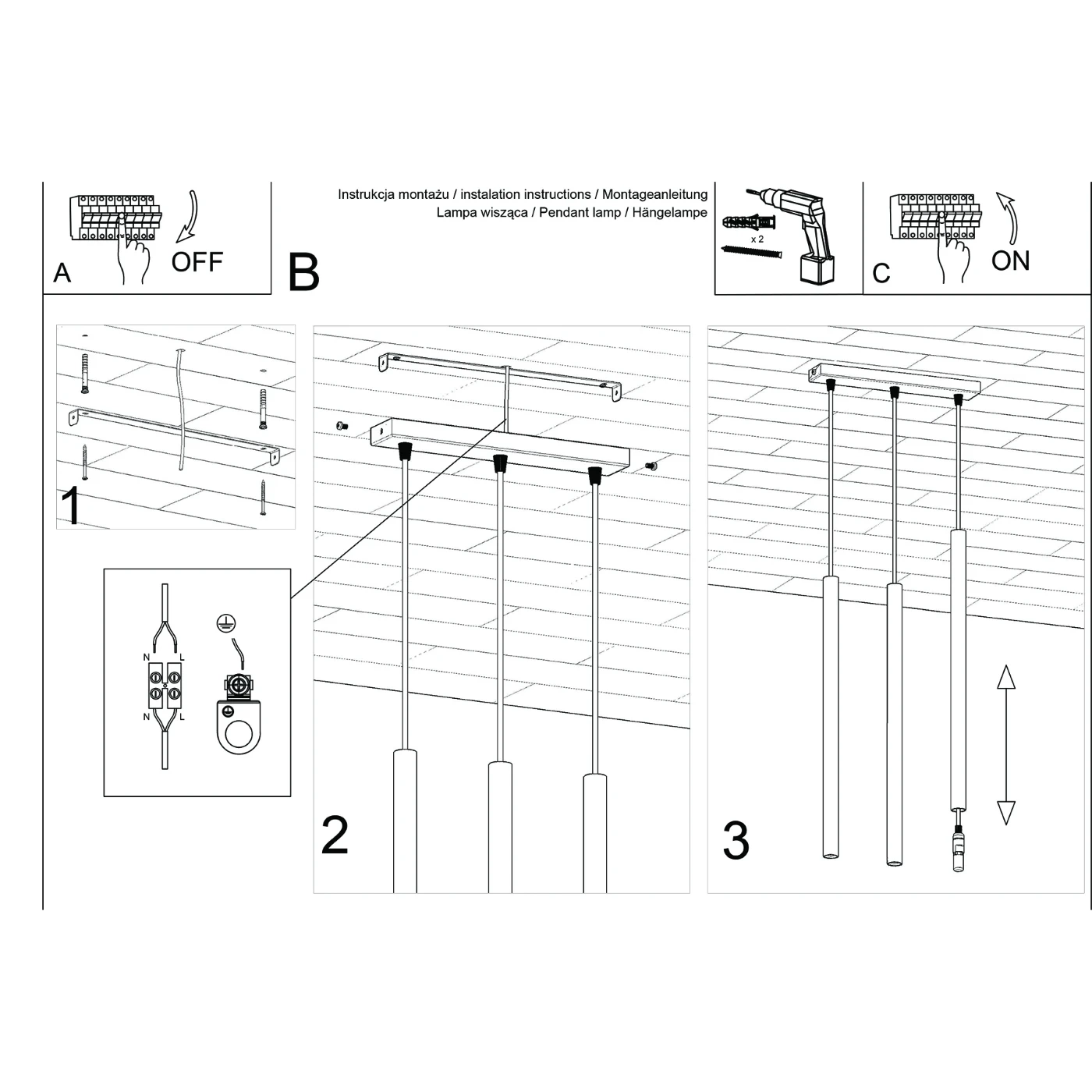 Type of lamp:Pendant light 3 (bar)